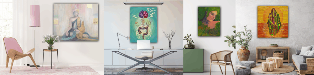 Meine Kunst ist mehr als oberflächliche Dekoration – sie öffnet Heilungsräume, in denen Ruhe, Vertrauen und innerer Dialog wachsen können. Sie lädt dazu ein, nicht nur betrachtet, sondern gespürt zu werden. So entsteht ein Umfeld, das Genesung, Transformation und persönliches Wachstum unterstützt.