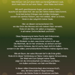 Oft wird diese Essenz von Schichten verdeckt: Überzeugungen, Muster und Illusionen, die nur durch den Akt des Loslassens abgebaut werden können. Wie Wasser, das unaufhaltsam seinen Weg findet, erinnern uns die dynamischen Elemente dieses Werkes daran, dass jede Herausforderung die Möglichkeit bietet, inneren Raum für Heilung, Reflexion und Erneuerung zu schaffen.