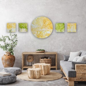 „Healing Sun Energy“ lädt dazu ein, die wohltuende Wirkung von Farbe und Form zu erleben – eine Kunst, die den Geist belebt, die Kreativität anregt und ein Gefühl von Optimismus und Lebensfreude schenkt. Ideal, um Räume mit Wärme, Vitalität und einer einzigartigen Identität zu füllen.